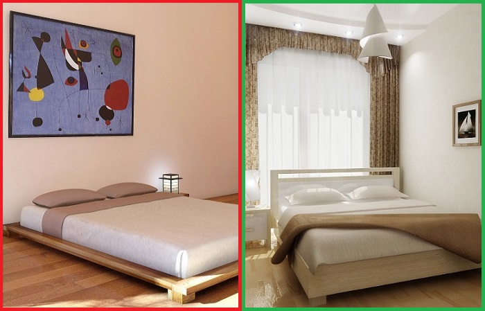 Кровать не должна быть слишком низкой - это неудобноПри выборе кровати нужно обязательно учитывать ее высоту:• Чересчур низкое спальное место может вызвать дискомфорт, особенно если комната заполнена большим количеством крупногабаритной мебели, которая будет визуально давить. Если вы купили низкую кровать, позаботьтесь о том, чтобы вокруг нее было много воздуха и свободного пространства.• Слишком высокая кровать сама по себе смотрится красиво, но накладывает некоторые обязательства. Так, пространство под ней должно быть красиво оформлено, например, при помощи акцентного ковра.