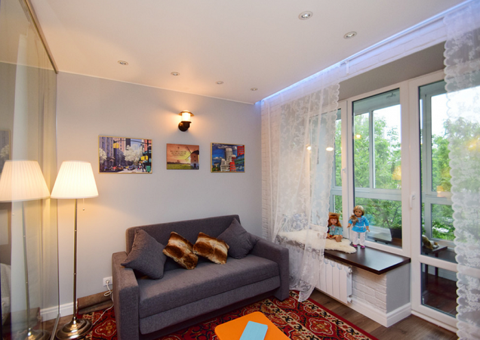 Окна без штор пропускают больше солнечного света. / Фото: dizajnintererov.comХорошее освещение – залог уюта и простора в маленькой квартире. Особенно этот вопрос актуален, если ваше жилье находится в теневой стороне. Предлагаем несколько вариантов решения проблемы:• Чтобы наполнить помещение естественным светом и визуально увеличить его площадь, замените плотные гардины на легкий тюль или и вовсе избавьтесь от штор.• Забудьте про центральное освещение. В большинстве случаев люстры выглядят слишком громоздко и не могут равномерно осветить имеющуюся площадь. Правильнее всего – разбивать освещение на разные уровни с привязкой к определенным зонам. Например, на рабочем столе можно установить лампу, на кухне вдоль фартука – светодиодную ленту, над кроватью – настенный светильник. Однако помните – освещать нужно только те места, которые действительно в этом нуждаются.