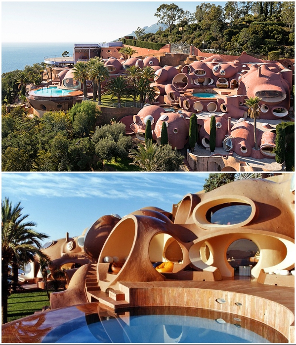 Вилла «Palais Bulles» считается самой дорогой жилой недвижимостью Европы. | Фото: palaisbulles.com/ themilliardaire.com.Необычный «Дворец пузырей» («Palais Bulles»), спроектированный венгерским архитектором Антти Ловагом, находится в Теуль-сюр-Мер недалеко от Канн (Франция). Неординарный зодчий был настолько вдохновлен телом женщины с ее округлыми формами, что постарался внедрить их в свой удивительный во всех отношениях дворец, не имеющий ни одного угла. Этот особняк он создавал для одного креативного предпринимателя, который мечтал сделать из него экстравагантную гостиницу. Но его планам не суждено было сбыться, заказчик умер до завершения строительства, а его наследники выставили «Дворец пузырей» на продажу. Своеобразный внешний вид и интерьер особняка настолько поразил легендарного дизайнера Пьера Кардена, что он решил его приобрести в качестве дома для отдыха, проведения модных вечеринок и даже показов.