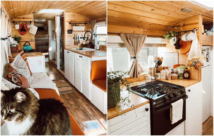 Американская пара, чтобы не платить за аренду жилья, превратила старый автобус в уютный дом - Архитектура и интерьер