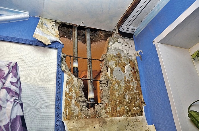 Отопительная система внутри стен. | Фото: s13.stc.all.kpcdn.net.Как уже было сказано, во времена юности наших родителей и бабушек с дедушками, когда страна восстанавливалась после последствий Великой Отечественной войны, население необходимо было переселить из бараков в собственные квартиры. Именно поэтому строительство велось в рекордно короткие сроки. Правда, качество из-за этого тоже страдало, но это уже другая история…