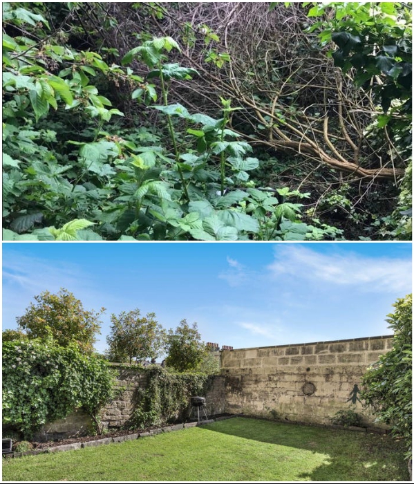 Заброшенный внутренний двор привели в порядок, и теперь он пригоден для отдыха на свежем воздухе. | Фото: insider.com/ za.opera.news, © Jamie Barrow.По условиям сделки, кроме подвала, был куплен довольно большой внутренний дворик. Его пришлось освободить от вековых зарослей и засеять газонной травой, так что новые владельцы вволю смогут наслаждаться отдыхом на открытом воздухе. Несмотря на большие сложности, молодому человеку, который уже 6 лет занимается подобными реконструкциями, удалось превратить заброшенное и жуткое подземелье в роскошные апартаменты.