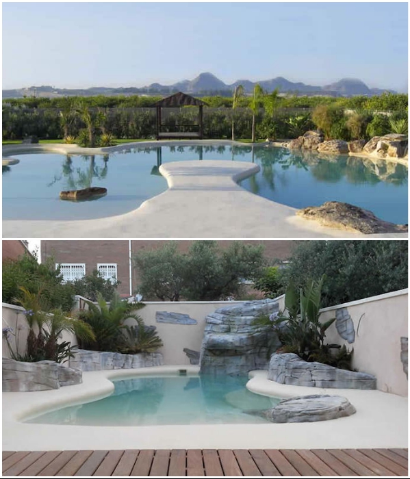 На любом дворе можно иметь собственный морской берег. | Фото: twentytwowords.com.Для тех, кому не посчастливилось жить у берега моря с белым песочком и чистой голубой водичкой, испанская компания Piscinas de Arena NaturSand предлагает привнести всю эту красоту к себе во двор. Казалось бы, что это не реально, очередная фантастика, но уже созданные объекты в Испании, Португалии, США, Мексике, Аргентине, Колумбии, Дубае, Бразилии, Марокко, Боливии и Чили доказывают обратное.