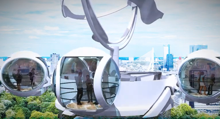 Полностью стеклянные кабины позволят увидеть все в округе (концепт «Spiral Tower»). | Фото: youtube.com/ © NorthernLight.Само же путешествие в стеклянной кабине станет увлекательным приключением, длящимся от 3 до 10 минут (в зависимости от высоты аттракциона). Причем пассажиры смогут любоваться не только умопомрачительным городским пейзажем или парковой зоной (смотря где будет расположен), но и наблюдать в окнах высотки за сменой 3D картин с изображением главных достопримечательностей города.