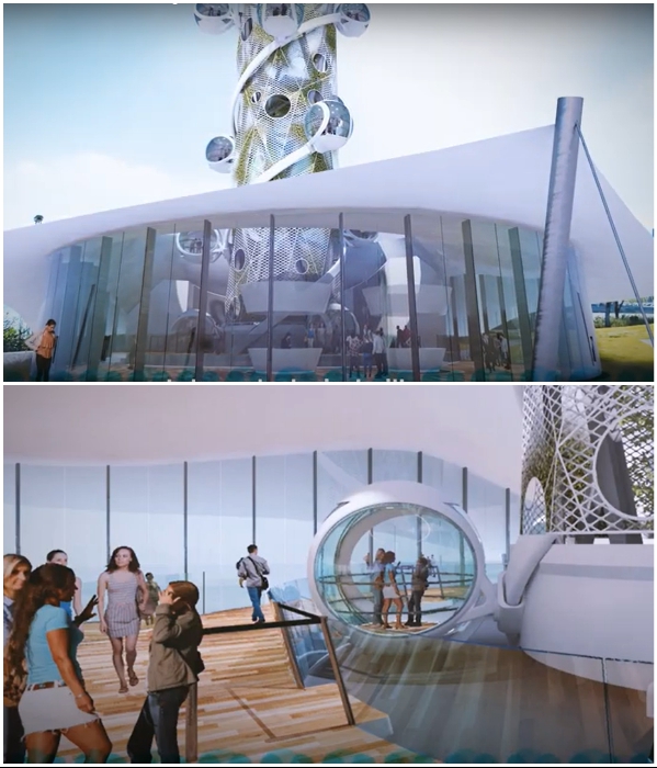 Путешествие начинается с большого павильона расположенного внизу аттракциона (концепт «Spiral Tower»). | Фото: youtube.com/ © NorthernLight.