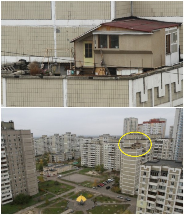 Еще 10 лет назад предприимчивый киевлянин решил обзавестись собственной дачей и огородом. прямо на крыше многоэтажки, в которой живет. Все эти годы садовод-любитель обживал территорию, пока не нагрянули правоохранительные органы, которым такое самоуправство совсем не понравилось. Пенсионеру уже выписали два штрафа, но он упорно старается узаконить свои постройки, при этом жильцы дома и даже председатель ЖСК троещинского Карлсона активно поддерживают. Киевлянин построил на крыше многоэтажки себе дачу с огородиком, но теперь начались проблемы. | Фото: youtube.com/ © Украина.РУ.Благодаря Петру Алексеевичу, жителю одной неприметной многоэтажки, Троещинский район Киева снова прославился, правда с довольно интересной стороны. Большой любитель земледелия, в прошлом сотрудник силовых структур, а нынче пенсионер решил обзавестись огородом и дачей недалеко от своей квартиры.Его «однушка» находится сразу под крышей 12-ти этажного жилого дома, вот у мужчины и созрел план строительства домика под открытым небом на большой высоте. Даже можно было сделать выход на дачу сразу же из квартиры. Так начиналось строительство дачи на крыше 12-ти этажного дома. | Фото: youtube.com/ © Украина.РУ.Для начала Петр Алексеевич отремонтировал ту часть кровли, которую он сам себе определил под дачный участок. Покрытие было не лучшем виде, оно и в дождь протекало, не то, чтобы выдерживать полив «сада-огорода». Учитывая плачевное состояние крыши, пенсионер сделал все необходимые изоляционные работы, уложил в два слоя толстый рубероид и лишь потом приступил к строительству домика. Высокая грядка с помидорами на крыше киевского многоэтажного дома по улице Лаврухина. | Фото: youtube.com/ © Украина.РУ.Для начала мужчина пристроил летний дачный дом 12 кв.м из плит ДСП, который со временем был достроен. Чтобы не нарушать закон, запрещающий вынос каких-либо коммуникаций за пределы квартиры, мужчина не стал испытывать судьбу и никаких удобств в виде электричества, воды, канализации или отопления к своей даче проводить не стал, но грядки и клумбы все-таки разбил. За 10 лет существования импровизированной дачи Карлсон, так его называют жильцы дома, обжился и обзавелся целым подворьем. На грядках нашла свое место старая ванна, чтобы хранить дождевую воду, ведь они с женой на городской даче выращивают зелень, сезонные овощи и цветы. Крыша этой многоэтажки стала идеальным местом для разведения цветов, отдыха на свежем воздухе и прогулок кота! | Фото: youtube.com/ © Украина.РУ.Для того, чтобы наслаждаться открывающейся городской панорамой, был сделан «дворик» с зоной отдыха со столом и лавками, а также установили садовые качели. Теперь семья может обедать или ужинать на свежем воздухе и даже принимать гостей. Заботливый хозяин успел пристроить сарайчик для инструмента, натянул веревки для сушки белья. На данный момент приготовлены столбики для создания забора, чтобы оградить «свой участок» на крыше. Это если и незаконно, но все-таки разумно, учитывая, что высота довольно приличная и такие прогулки не всегда могут оказаться безопасными. Ведь на «дачу» являются гости с детьми и собственные внуки. Дачный домик на крыше киевской многоэтажки теперь оброс сарайчиком и открытой зоной отдыха. | Фото: news.bigmir.net.Казалось бы, куда все эти годы смотрела общественность и управляющая компания, обслуживающая эт