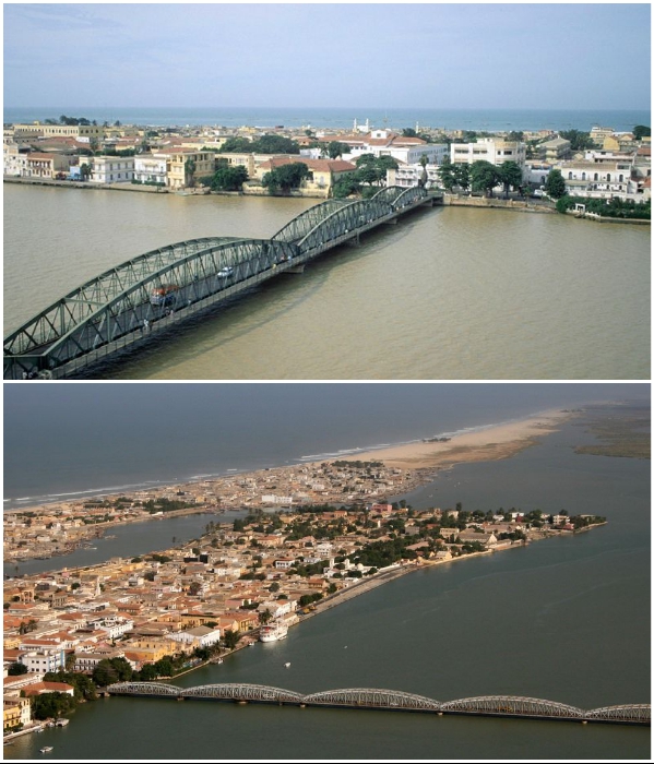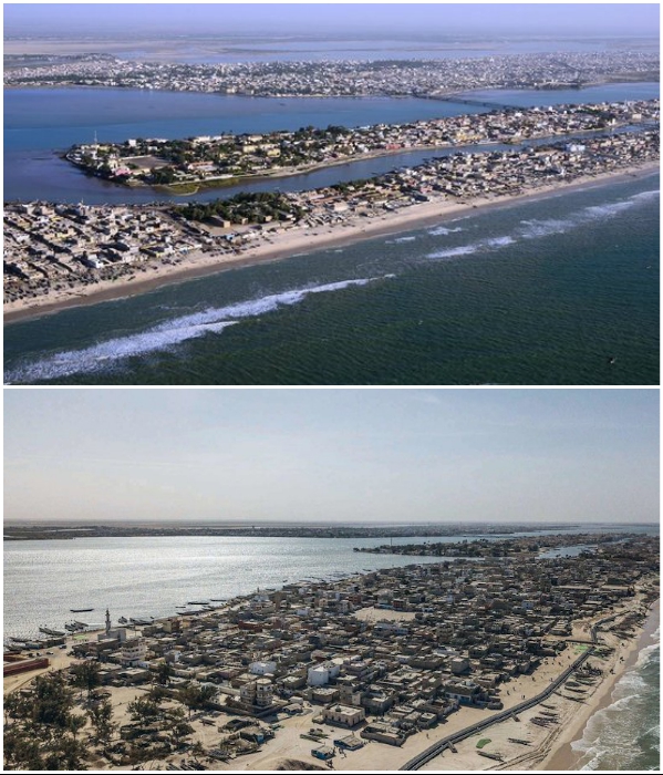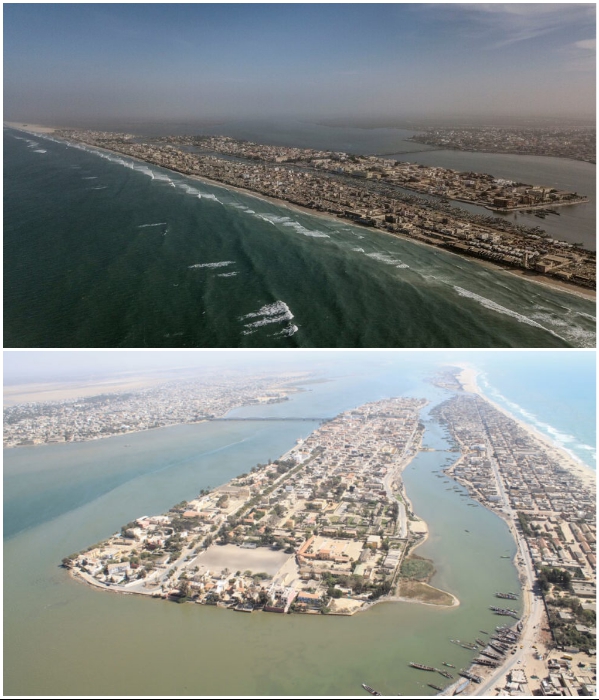 Часть полуострова, на котором расположен город Сан-Луи, превратился в остров (Сенегал). | Фото: fr.tripadvisor.ca/ marianne.net.Сам город находится на клочке суши, именуемом полуостровом Langue de Barbarie. С одной стороны он омывается водами Атлантики, а с другой – рекой Сенегал, поэтому любое изменение климата чревато затоплениями. Так вот, чтобы по-быстрому решить проблему с наводнением, местные власти прорыли четырехметровой канал, который должен был отвести воды реки в океан. Но получили абсолютно обратный эффект. И если на несколько дней это спасло ситуацию, то буквально в считанные месяцы соленые воды океана размыли берега канала и полностью отрезали полуостров от материка.