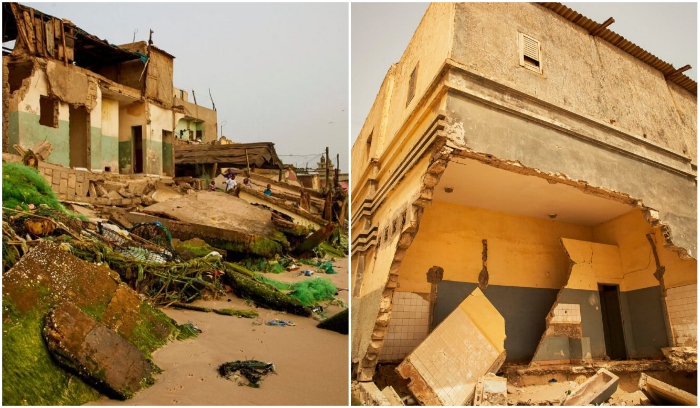 Водная стихия все больше разрушает город (Saint Louis, Сенегал). | Фото: news.africahotnews.com/ KoldaNews.К сожалению, такая ситуация знакома жителям всех прибрежных районов бывшей столицы, которая находится под постоянной угрозой наводнения, ведь воды океана подошли совсем близко. Угрожающие и необратимые последствия климатического кризиса Saint Louis уже замечены на общемировом уровне. Так, например, Всемирный банк выделил 24 млн евро на борьбу с последствиями изменения климата в регионе, периодически выделяет средства и ООН. Также президент Франции Эммануэль Макрон в 2018 г. пообещал выделить дополнительных 15 млн. евро на строительство стены, удерживающей океан. Но буквально за полгода это ограждение рухнуло от натиска воды, и еще 10 тыс. человек остались без крова.
