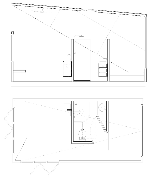 План-чертеж микро-дома на колесах «Base Cabin» от строительной фирмы «Studio Edwards» (Мельбурн). | Фото: dezeen.com.Так это или нет, покажет время, ведь домик только в марте этого года отправился в путешествие, но то, что он получился вполне комфортабельный – это проверенный факт. Учитывая, что внутреннее пространство «Base Cabin» более чем рационально использовали, удалось организовать зразу 3 комнаты, которые полностью отделаны натуральными материалами. Это позволило создать теплую и уютную обстановку с приятными тактильными ощущениями.