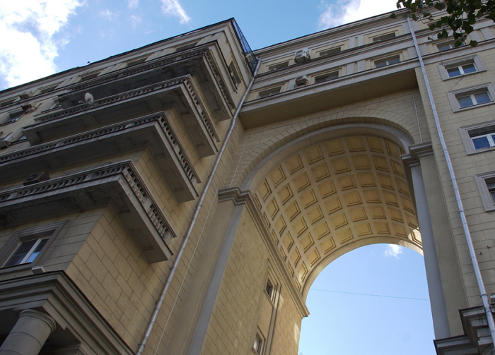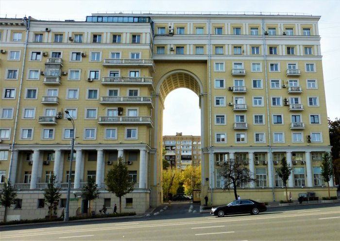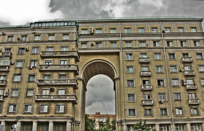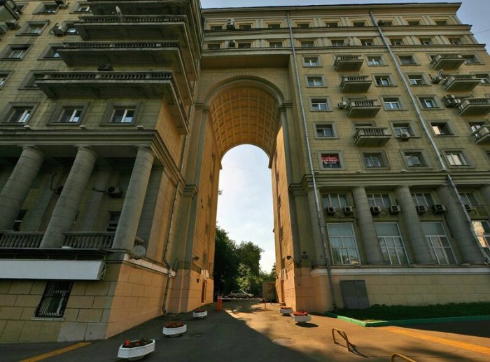 В Советском Союзе строили не только типовые жилые дома и стандартные постройки, но и красивые здания с необычными, а часто, и непонятными для нас элементами. Одним из таких зданий является дом, который стоит на Земляном валу в Москве.1. Семейный подряд Высота арки в доме составляет примерно 7 этажей / Фото: yandex.uaДом № 48 А и Б на Земляном валу имеет достаточно интересную архитектуру. Прежде всего, все обращают внимание на огромнейшую арку, приблизительная высота которой равна семи этажам. Сегодня, когда мы смотрим на здание, то видим единую конструкцию. Но в самом начале своего существования он был меньше ровно на половину. Здание было спроектировано супругами-архитекторами / Фото: pinterest.co.ukСтроительство дома началось в тридцатых годах прошлого столетия. Над разработкой трудились несколько архитекторов: Николай Безруков и Александр Хряков со своей супругой Зоей Брод. Кстати, А. Хряков со временем стал знаменитым специалистом в этой области деятельности. В 1949 году он получил Сталинскую премию, как участник проекта Главного корпуса МГУ, построенного на Воробьевых горах. Спустя еще десять лет архитектор стал лауреатом Ленинской премии за «Лужники». Постройка дома датируется 1936 годом / Фото: mirkvartir.ruСупруги-архитекторы достаточно часто работали над совместными проектами. Один из них – Большой читальный зал, который находится в Библиотеке им. Ленина. Есть и другие здания в Москве, спроектированные Зоей Брод и Александром Хряковым. Что касается описываемого дома с высокой аркой, то он возник на Земляном валу в 1934 г., но в некоторых источниках постройка датируется 1936 г. вполне вероятно, что именно второй вариант правильный, так как Хряков переехал из Ленинграда в столицу лишь в 1933 году.2. Зачем была нужна такая большая арка Планировалось возведение второго комплекса в аналогичном стиле / Фото: cartoonblues.comПервый проект был гораздо масштабнее. Изначально планировалось, что дом будет доходить до самой набережной, а со временем планировалось возвести в аналогичном стиле второй комплекс, но уже вдоль Яузы. К сожалению, планы так и остались планами, так как началась Великая Отечественная война. До ее начала строители успели построить лишь первый корпус и то только наполовину. Здание значительно отличалось от аналогов того времени / Фото: cao.todayСамо здание выгодно отличалось от большинства аналогичных конструкций того времени. Нижние его этажи были украшены внушительными колоннами, а пространство немного повыше – фризами. Необычный вид имеют и окна в форме квадратов, а также балконы с полуколоннами, сооруженными на верхних этажах. Дом имеет двадцатиметровую арку - самую высокую в столице / Фото: m.ok.ruНо главная его особенность, визитная карточка – это необычная и самая высокая в столице арка. В высоту она достигала приблизительно двадцать метров. Существовала даже версия, что в планах у городских властей было в будущем установить во дворе скульптуру Иосифа Виссарионовича Сталина довольно внушительных размеров, поэтому и сделали такую арку, чтобы можно было без проблем ее туда транспортировать. Естественно, это всего лишь домыслы и предположения. Причиной появления арки стали архитектурные веяния того времени / Фото: mperspektiva.ruРеальные причины появления такой конструкции гораздо проще. Вероятнее всего, архитекторы поступали в соответствии с в