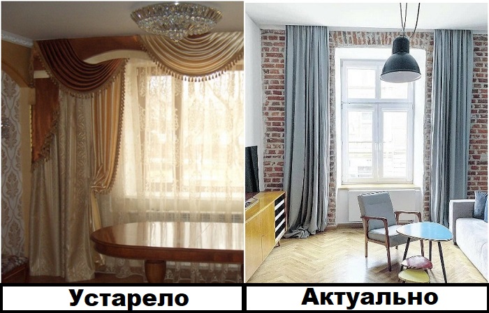 Тяжелые многослойные шторы лучше заменить на легкие и светлыеИ вновь возвращаемся к этому вопросу. Почему-то никто не хочет понять простую истину: хрущевка – не место для многослойных драпировок и пышных штор. Однако хозяйки с упорством продолжают навешивать на окна огромное количество жаккарда и органзы, свитых в густые, плотные складки. Все эти рюши, накидки, ламбрекены не только делают пространство визуально меньше, но и создают визуальный шум, терзая взгляды всех жильцов. Кроме того, они собирают большое количество пыли, а до стиральной машины доходят в лучшем случае пару раз в год.Мы не призываем отказаться от драпировок. Они имеют право на жизнь, но только в том случае, если занавески легкие и светлые. Хорошим выбором станут римские шторы и тканевые панели из льняных полотен (особенно, если солнце любит заглядывать в комнату по утрам и будить раньше положенного времени). А вот тафту, плюш и толстый жаккард точно пора оставить в прошлом.Также старайтесь избегать 7 ошибок в интерьере, которые недопустимы на маленькой кухне