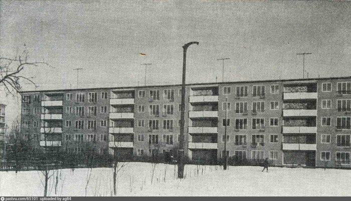 Пластмассовый дом не был экспериментальным, он изначально возводился для заселения москвичей / Фото: pastvu.comСледует сразу сказать, что это сооружение не являлось экспериментальным. Дом изначально возводился для заселения московских граждан. Владельцы квартир в нем прожили более двадцати лет и особых каких-то проблем с качеством жилья не испытывали.Возвращаясь к истории, сразу отметим, что строительство здания в Савеловском районе Москвы на 4-ом Вятском переулке завершилось в 1962 г. В 1963 г. дом сдали в эксплуатацию и, соответственно, заселили.