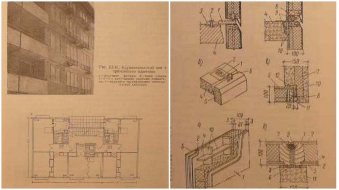 Теплозащитные характеристики домов из пластмассовых панелей были значительно выше, чем у бетонных / Фото: anothercity.livejournal.com/В качестве утеплителя, закладываемого изнутри, выступал пенопласт толщиной до восьми-девяти миллиметров. За ним был пароизоляционный слой из алюминиевой фольги и верхний слой из гипсоволокна (стандартная гипсовая штукатурка). Вес панели был достаточно небольшой – 270 килограммов. Естественно, по сравнению с бетонной плитой это совсем небольшая масса. А что самое интересное, теплозащитные характеристики были почти в два раза выше нормы того времени.Кстати, стыки между панелями тоже защищались материалами из полимеров. Это был пороизол или изол. Не обошлось и без стекловаты. Несмотря на то, что конструкция была многослойной и сложной, проблем с монтажом не возникало. Строительство велось очень быстро. Более того, в таком доме жильцы чувствовали себя вполне комфортно, да и проблем, как и жалоб в адрес сооружения не поступало.