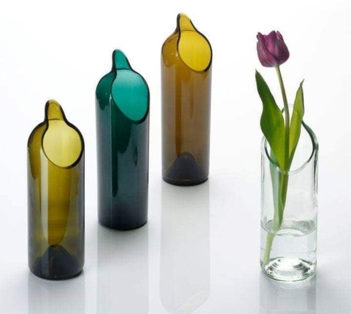 Срезанные бутылки еще больше похожи на настоящие вазы. /Фото: 1.bp.blogspot.comПолезный совет: Если создание вазы планируется из бутылки из-под шампанского, то процедуру с горячей и холодной водой, скорее всего, придется повторить несколько раз, поскольку стекло более толстое.