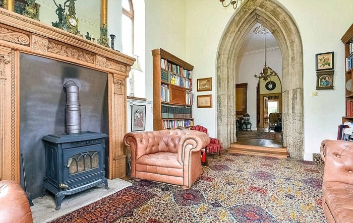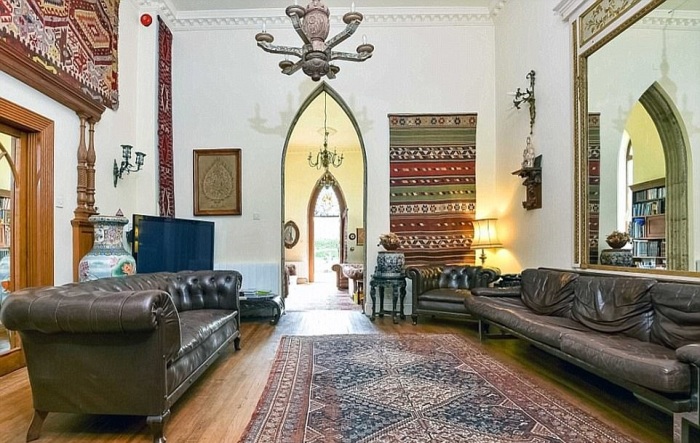 Готические арки и добротная мебель стали украшением гостиной в «Sway Tower» (Великобритания). | Фото: dailymail.co.uk.Именно последний владелец (Пол Атлас) вдохнул в постройку новую жизнь, превратив в неординарное жилое помещение, которое облагораживал целых 45 лет. По словам Пола, за все эти годы его семья потратила более 1 млн дол. И это не считая сил, времени и затрат, понесенных после мощнейшего шторма, обрушившегося на южное побережье Англии в 1987 г. Тогда деньги на восстановление самой неординарной достопримечательности Хемпшира собирали всем графством.