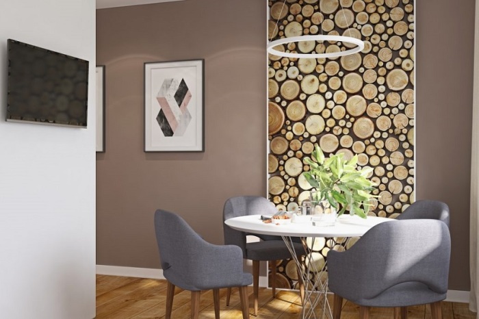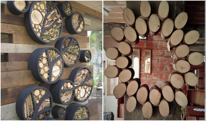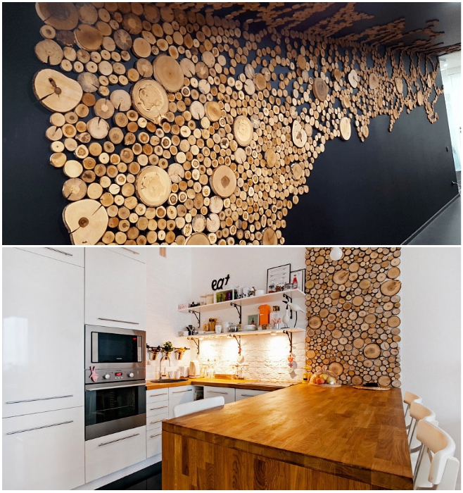 Даже если вы приверженность эко-стиля, не стоит декорировать спилом все имеющиеся площади. | Фото: kak-svoimi-rukami.com/ ogorod.mirtesen.ru.Совет: Вариантов дизайна масса, нужно лишь грамотно определиться с тем, что подойдет для интерьера именно вашей квартиры. При этом не стоит забывать, что все домочадцы должны наслаждаться видом подобных вкраплений или массовых заполнений пространства.