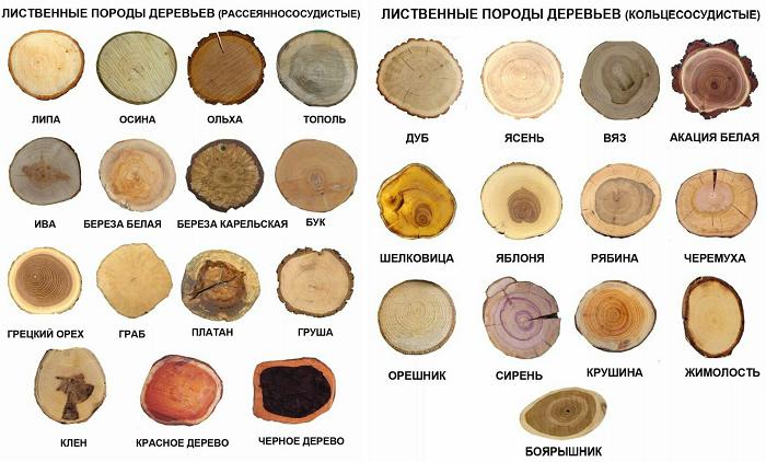 Срезы основных лиственных пород деревьев. | Фото: pikabu.ru.