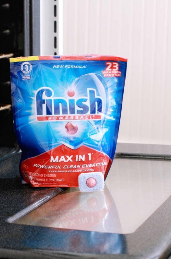 Дверца духовки — место, которое очень легко загрязняется, но при этом невероятно трудно очищается. Порой приходится тратить несколько часов и использовать дорогие и агрессивные химические средства, чтобы отмыть дверцу от жира и прочих загрязнений. Но, зная одно секретное средство, справиться с процессом очищения дверцы духового шкафа можно буквально за 10-15 минут. Этим средством является таблетка для посудомоечной машины.
