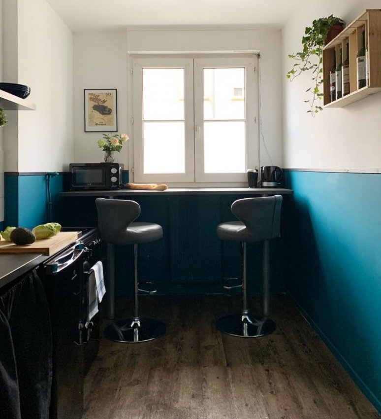 Замените стандартный обеденный стол на откидной столик, который в сложенном виде совсем не занимает места или на барную стойку.