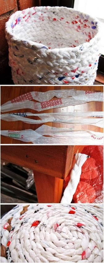 Повторное использование пластиковых пакетов благотворно скажется на экологии нашей планеты и поможет прекрасно провести время за созданием необычных и очень полезных вещей. Самые простые пластиковые пакеты можно превратить в яркие многоразовые сумки, декоративные корзины, коврики, игрушки и даже в одежду и обувь. Не спешите избавляться от скопившихся в доме пакетов, пока не увидите, какие чудесные вещи можно из них сделать.