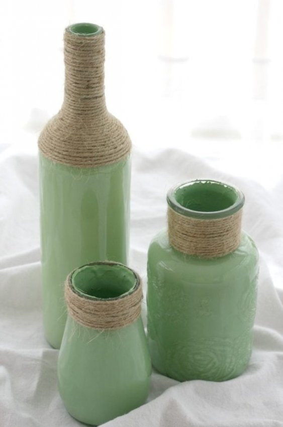 Стеклянные бутылки и банки порой скапливаются в большом количестве. Особенно если это какая-то красивая банка или бутылка необычной формы — рука не поднимается её выбрасывать, хочется сделать с ней что-то интересное. Если у вас есть небольшая коллекция банок и бутылок, которые нужно куда-то пристроить, то оцените прикольные идеи для интерьера ниже: