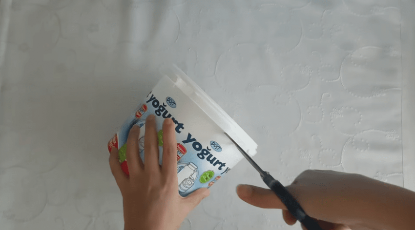Обрезаем ведро в месте крепления ручек, подравниваем, при необходимости убираем этикетку.