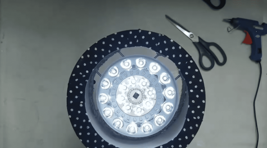 Устанавливаем абажур на основу и закрепляем его. Отверстие оставляем открытым.