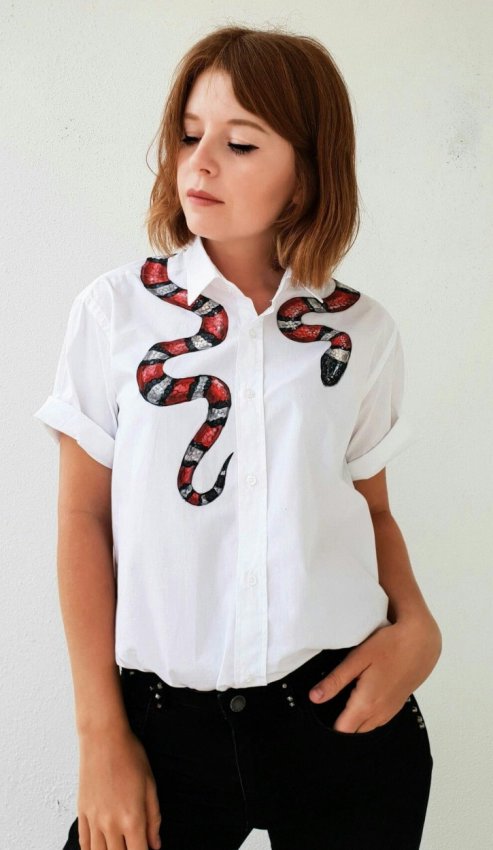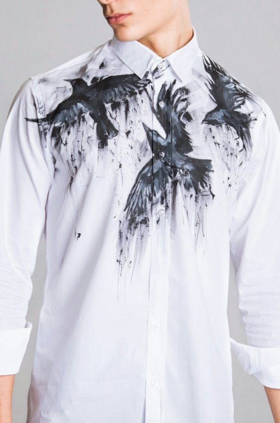 Подчеркнуть индивидуальность и добавить «изюминку» к образу помогут стильные рубашки с росписью. Сделать несложную роспись на рубашке можно своими руками, предварительно потренировавшись на небольшом отрезе ткани. А если же вы обладаете художественным талантом, то с легкостью превратите заурядную однотонную рубашку в настоящее произведение искусства, которое привлечет всеобщее внимание.