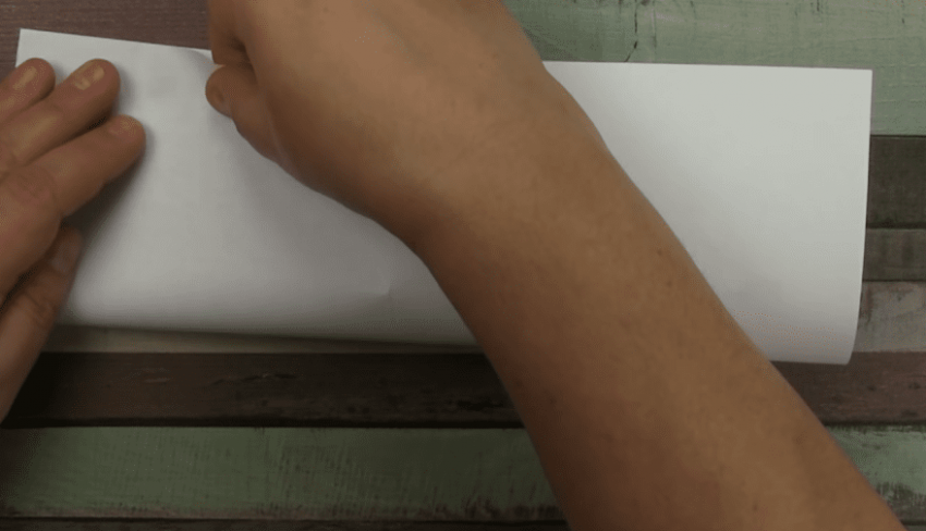 Разворачиваем лист по принципу альбомного и сгибаем пополам. После разгибаем лист и сгибаем половинку к середине. Дальше работаем с одной половинкой. Делаем еще 2 загиба к середине, после чего разворачиваем лист.