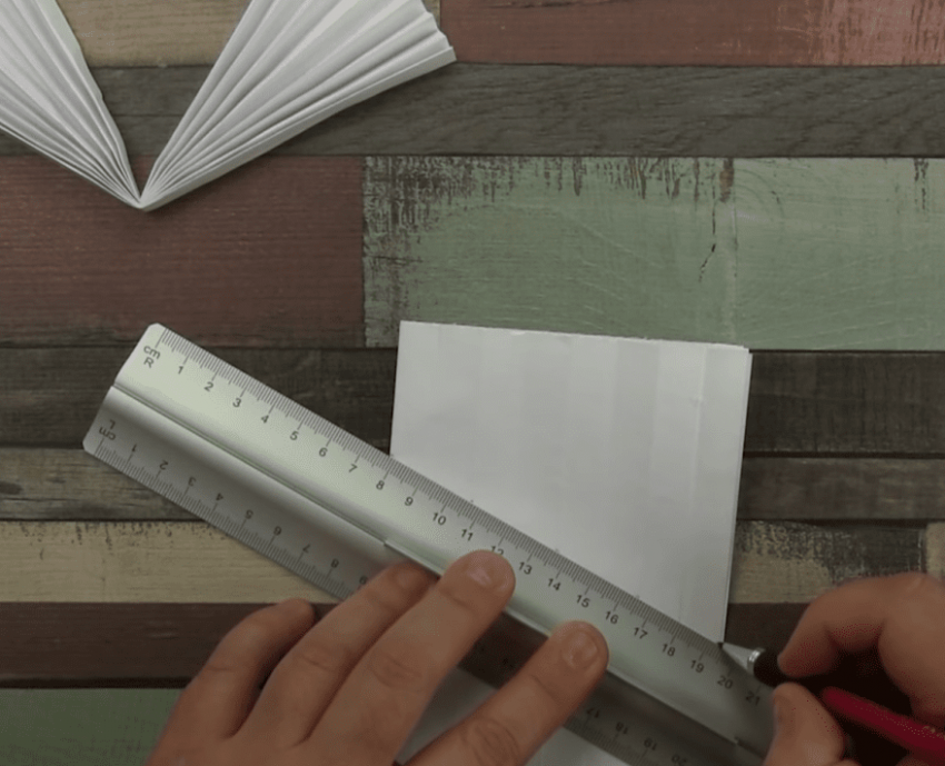 В результате половинка листа поделена на 8 равных полос. Теперь просто собираем их по принципу гармошки. Затем проделываем то же самое со второй половиной листа. На выходе получаем 12 заготовок, по 4 каждого размера.