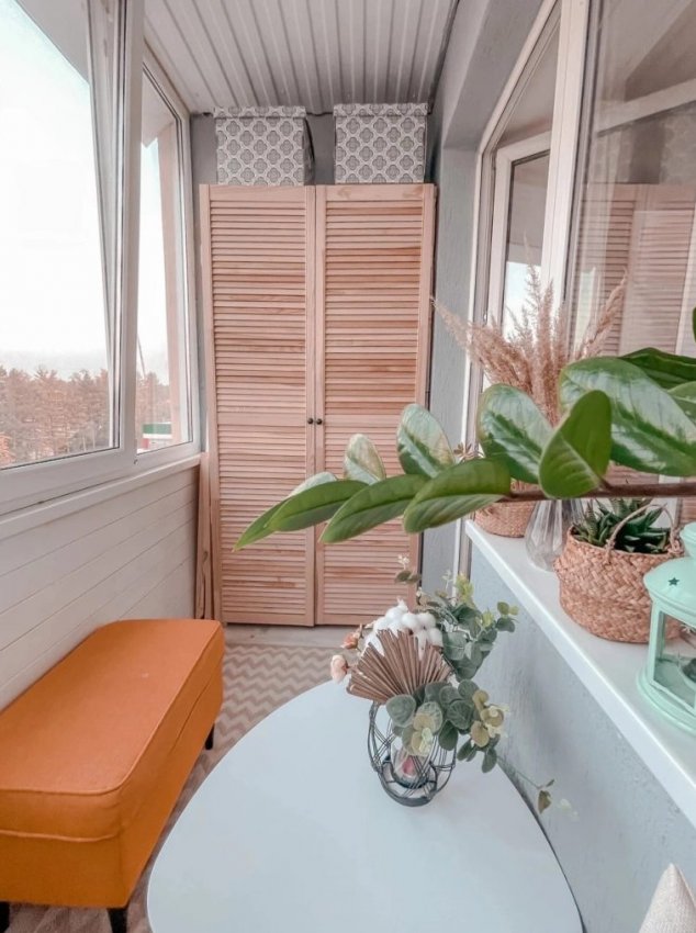 На балконе жалюзийные двери можно использовать, чтобы организовать хранение
