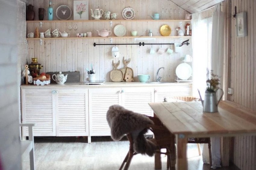 На кухне жалюзийные двери тоже отлично смотрятся