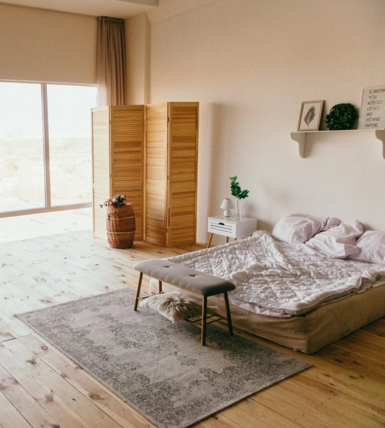 Жалюзийные двери являются отличным декоративным элементом зонирования комнаты