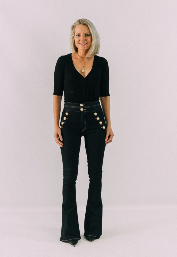 Сила расклешенных джинсов… они заставят вас выглядеть НАМНОГО выше, длиннее, стройнее и стройнее… Это похоже на волшебный трюк! Они особенно льстят женщинам с большими бедрами