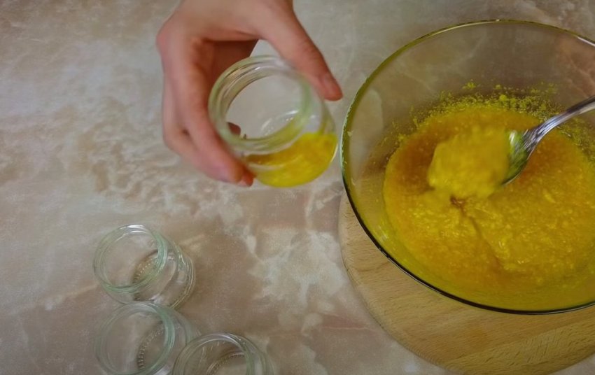 К чесноку с лимоном добавьте куркуму, которая является природным антибиотиком и содержит огромное количество полезных веществ и витаминов. Добавьте к массе жидкий мед и хорошо перемешайте.