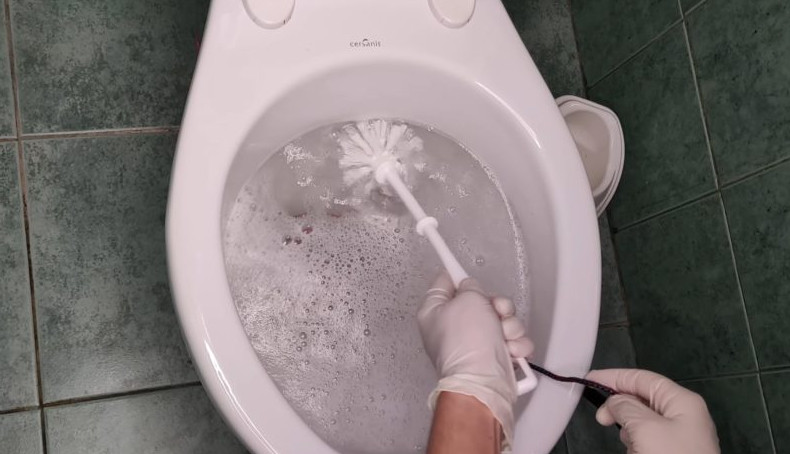 Почистите унитаз ершиком. Все загрязнения очень легко удаляться, вам не придется прикладывать усилия для чистки.