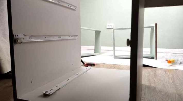 Когда всё просохнет, следует установить на место направляющие и задние стенки.