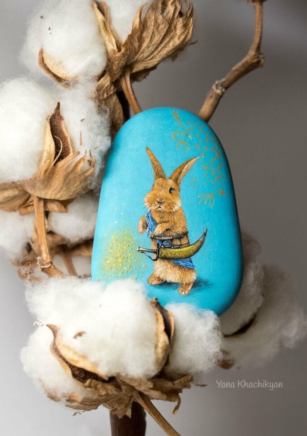 Яна Хачикян — талантливая художница, которая создает миниатюрные шедевры. Чаще всего Яна использует в качестве холста камни размером с грецкий орех или бумагу, размер которой не превышает размер монетки. Самые удивительные работы Яны Хачикян представлены на перьях и крошечных семенах.