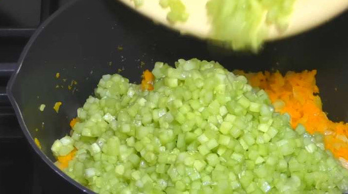 Обжарьте лук и морковь на растительном масле. Добавьте огурцы. Тушите на среднем огне около 20-25 минут.