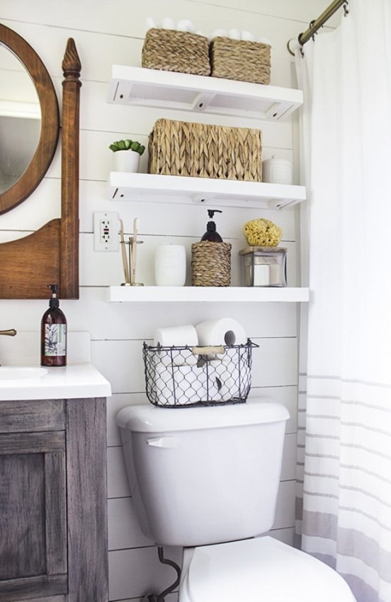 Как преобразить небольшую ванную с помощью умных идей хранения над унитазом - «Своими руками»