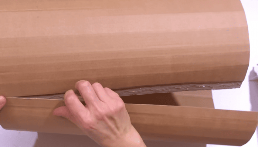 Основой для корпуса бельевой корзины станет гофрированный картон. Определив высоту и ширину корзины, вырезаем из картона заготовки нужной высоты. С противоположных сторон заготовки делаем продольные надрезы по всей длине с таким расчетом, чтобы можно было снять слой картона. Учитываем и то, что один надрез должен находиться на лицевой стороне, а ответный на изнаночной. Если заготовок несколько, то делаем обрезку на каждой из них.