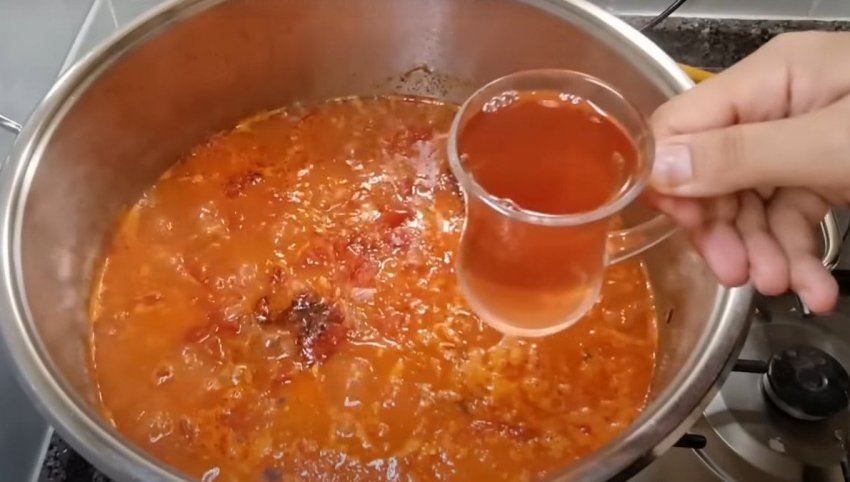 Доведите массу до кипения и добавьте виноградный уксус. Накройте кастрюлю крышкой и готовьте на среднем огне 40 минут.