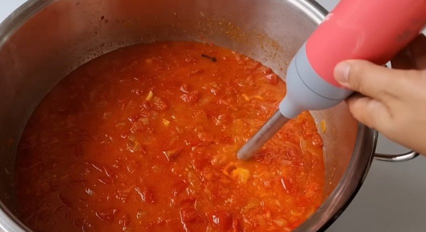Пробейте ингредиенты погружным блендером, чтобы получить массу однородной консистенции.
