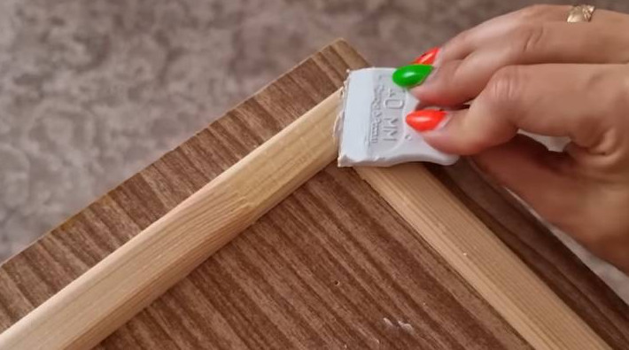 Всю поверхность зашлифовали наждачкой, дверцы сняли. На них на жидкие гвозди прикрепили рейки 2 см толщиной, как показано на фото ниже, в виде трёх рам.
