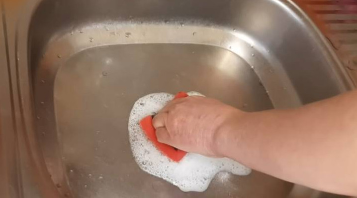 Через пару минут влейте уксус. И сразу закройте губкой.