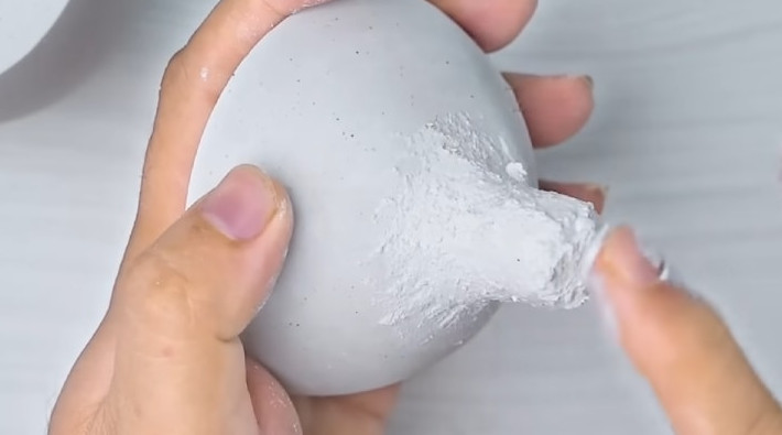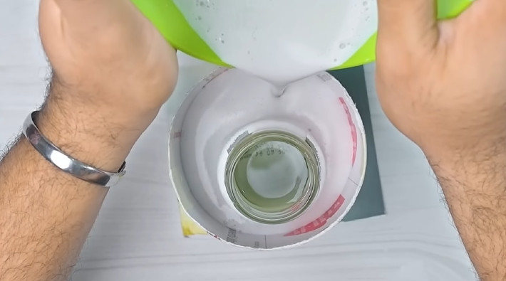 Через пару часов открутите крышку с цементом и гипсом. Сделайте углубление сверху по центру крышки, внутрь поместите густой раствор гипса и цемента, сформируйте ручку.