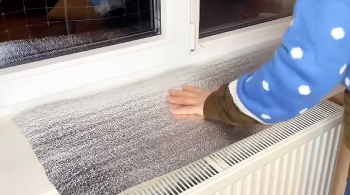 Обратите внимание: если у вас радиатор выступает над подоконником, то кусок подложки должен быть чуть шире подоконника. Тогда на окнах не будет скапливаться конденсат.