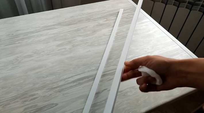 Первым делом необходимо обезжирить не только окно, но и кабель-канал. Тогда крепление на скотч будет более надёжным.