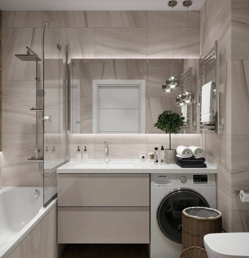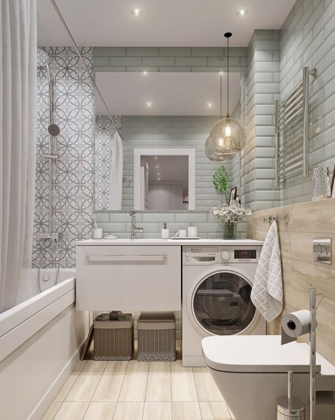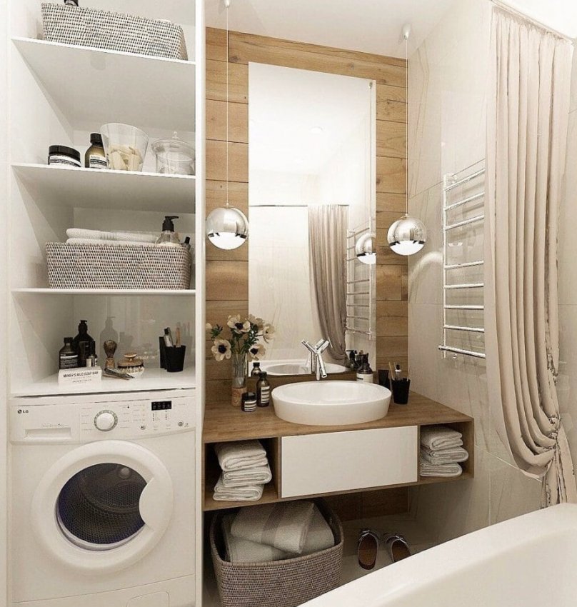 Не многие могут похвастаться наличием большой и просторной ванной комнаты, в которой поместится абсолютно все, включая стиральную машину, шкаф для полотенец, стеллаж для косметики и даже этажерка для растений. Реальность такова, что приходится придумывать, как рационально разместить все необходимое на площади порядка 4 кв.м без ущерба для собственного комфорта.