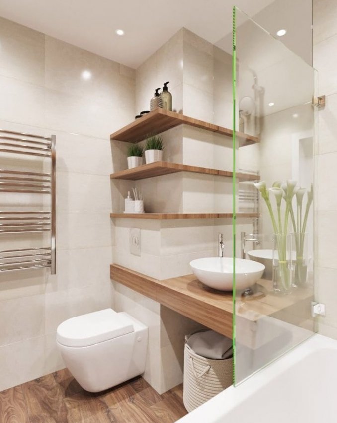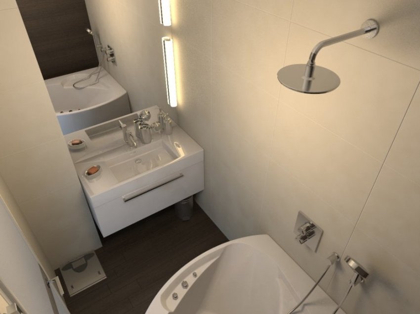 Возможно придется сделать выбор в пользу нестандартной ванны меньшего размера, что также позволит сэкономить место для дополнительно шкафа или стеллажа.